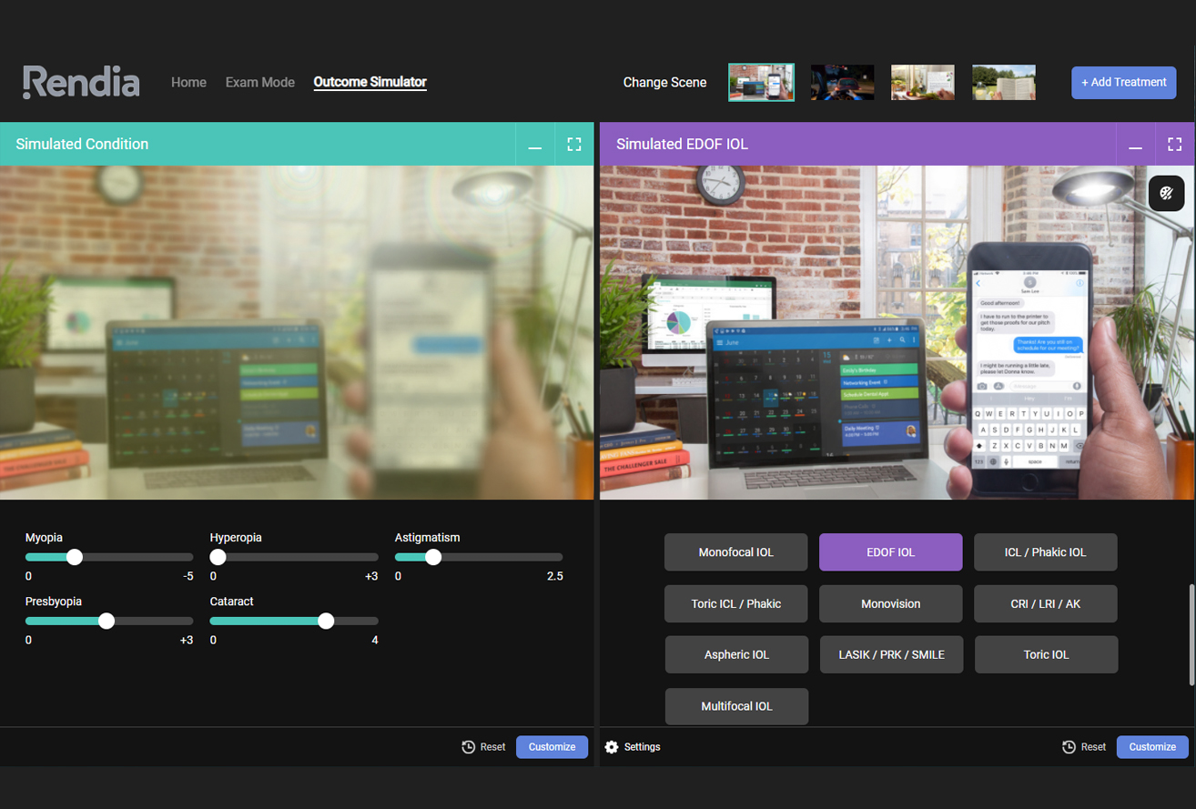 - Simulate the patient’s current unaided vision alongside possible treatments, helping them envision what they might experience.
